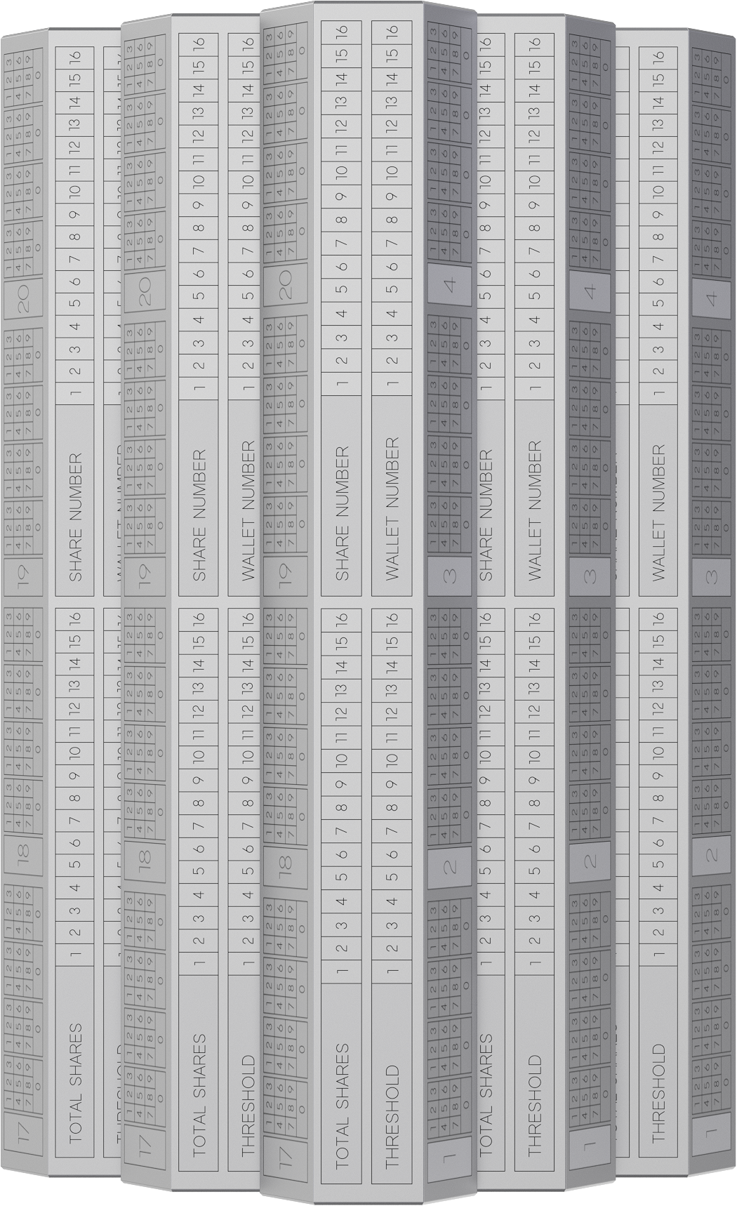 Simply put: a share/ part has 20 words. Your setup can consist of 3 shares, with a minimum of 2 shares needed to recover the wallet. All the words have a correlating number. We use the numbers because they are easier to mark in the titanium than in long words.